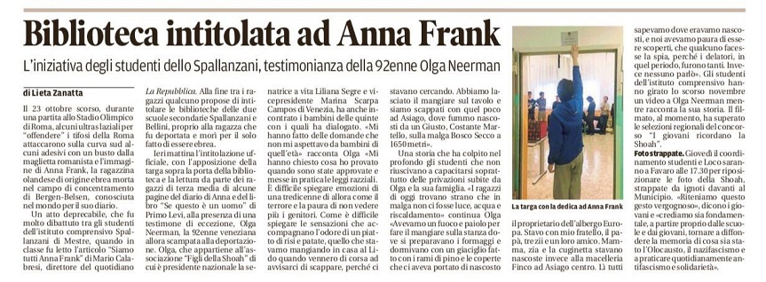 Biblioteche Scuola Secondaria – Dedicazione ad Anna Frank