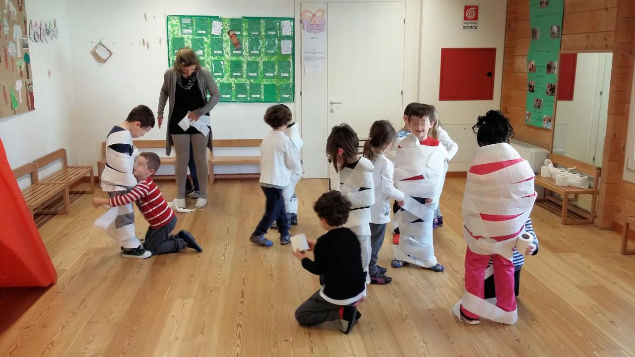 3 anni: i bambini partecipano ai laboratori sopracitati suddivisi in sottogruppi con percorsi adeguati alla loro età.
