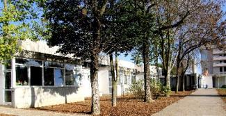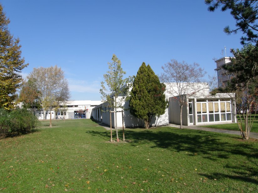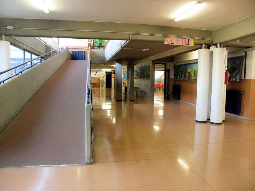 L'edificio disposto su due piani è circondato da un ampio spazio verde, accessibile direttamente da tutti i locali del piano terra.
