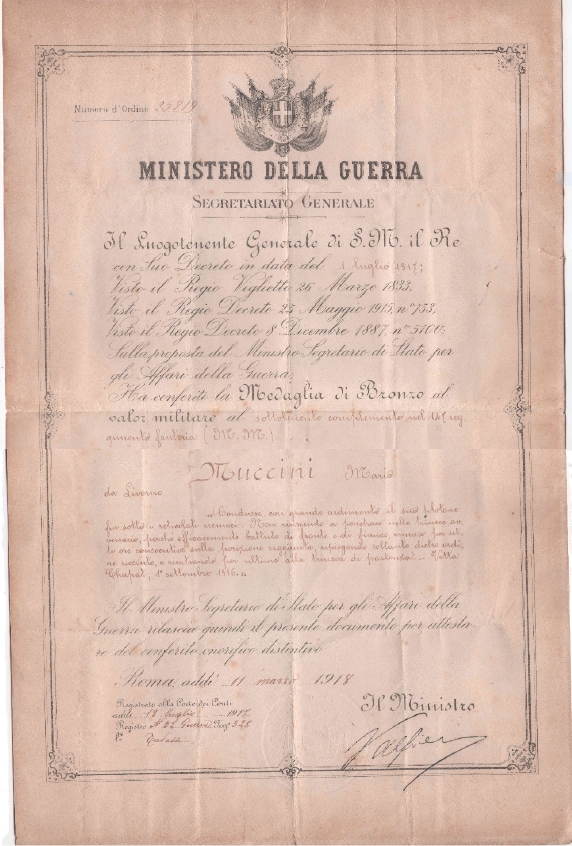 Il 14 febbraio 2017 dopo una richiesta inoltrata al Ministero dell’Istruzione riceviamo comunicazione che la cartella dello stato di servizio di Mario Muccini è stata ritrovata. La ricerca continua alla Biblioteca Marciana di Venezia con un permesso speciale del Direttore e, spulciando tra le copie del quotidiano il Gazzettino di quegli anni, vengono trovati articoli e foto.