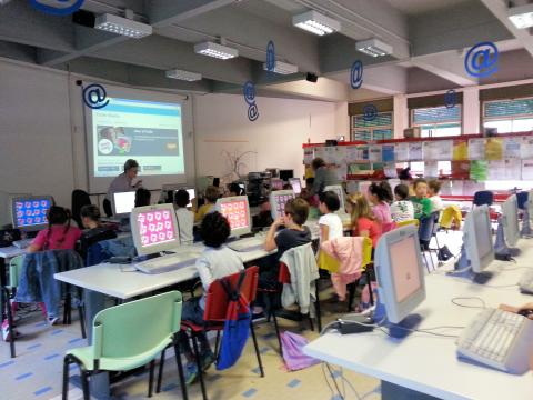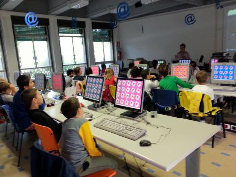 Gli alunni delle classi terza B e quinta A della scuola primaria S.M. Goretti ospiti al Centro Internet di Marghera per l'evento "Settimana del coding".